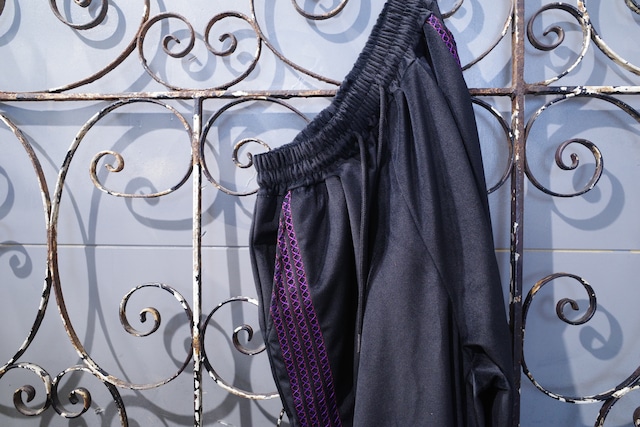 ■ディテール 買い付け先で一目惚れしたトラックパンツ サイドラインに緻密なステッチワーク ルーズなシルエットにドローコードつきの裾 上品な光沢感を持つベロア素材 配色も絶妙なオススメパンツです! グレージュ/ブラック/ワインレッド 三色展開 ■素材:ポリエステル ポリウレタン レーヨン ■カラー:ブラック ■サイズ:フリー 総丈 106 ウエスト 76-104 ヒップ 122 股下 74