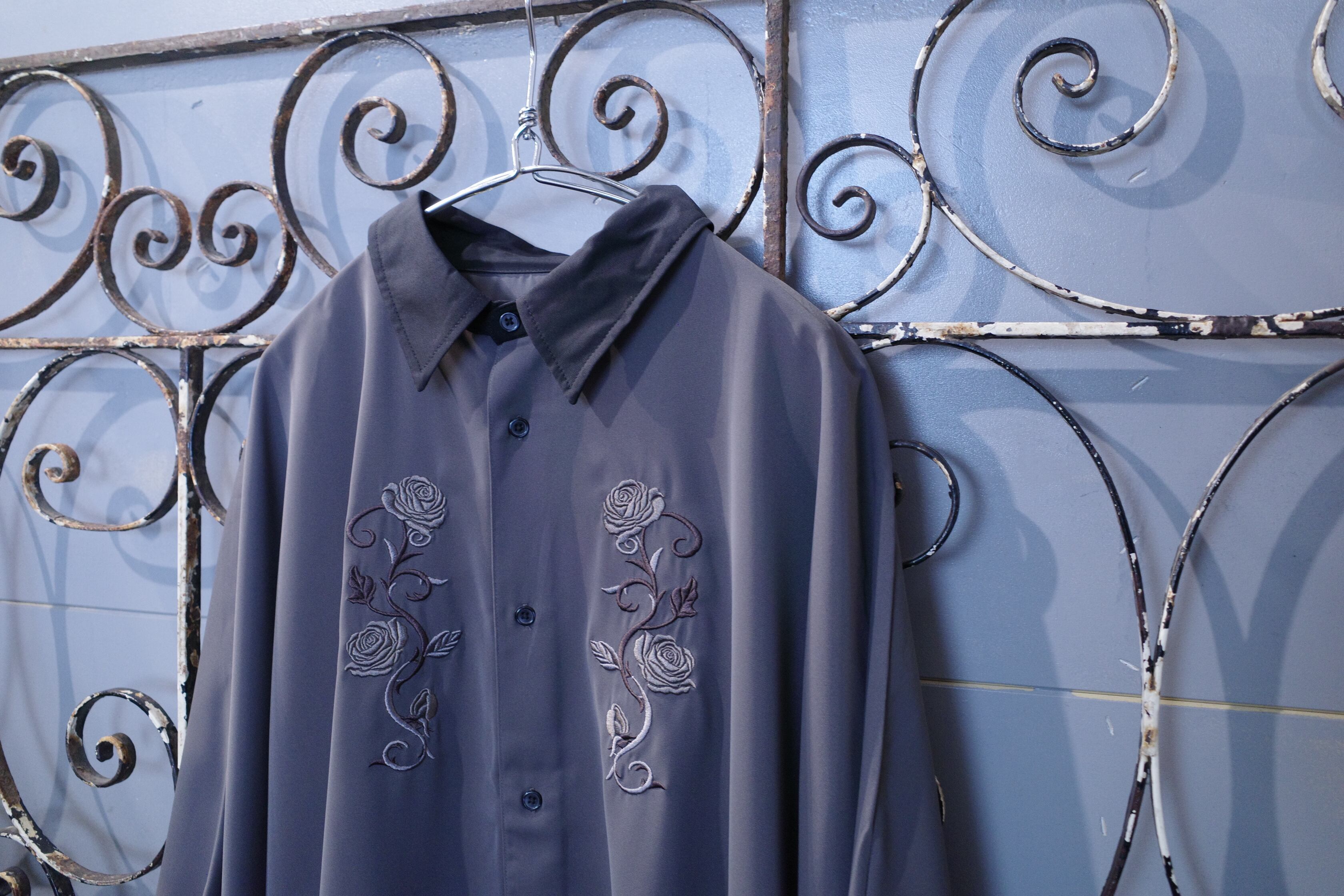バラ刺繍ドルマンスリーブシャツ (チャコール)