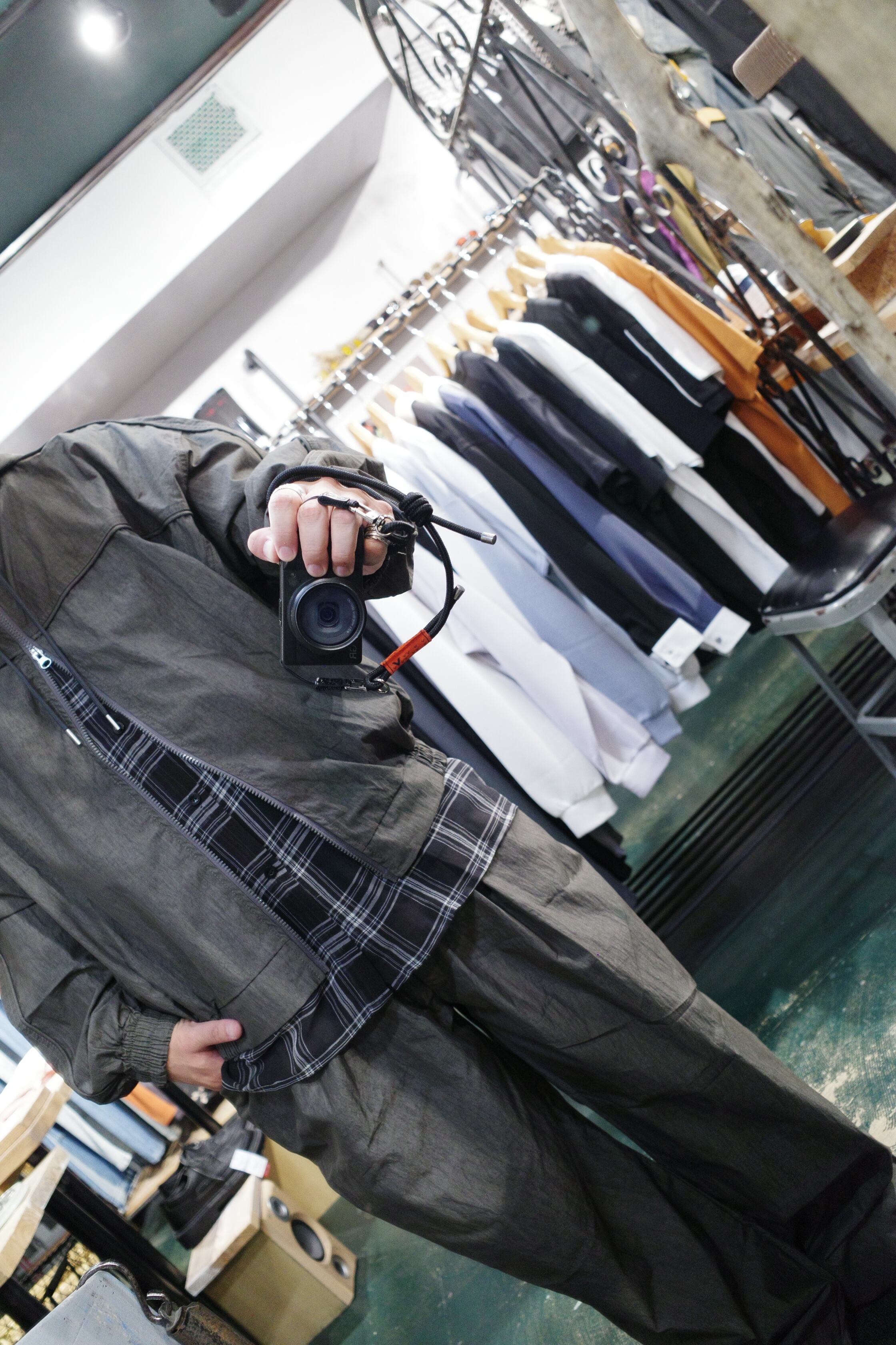 コットンナイロンのガシッとした生地感が男臭さを演出