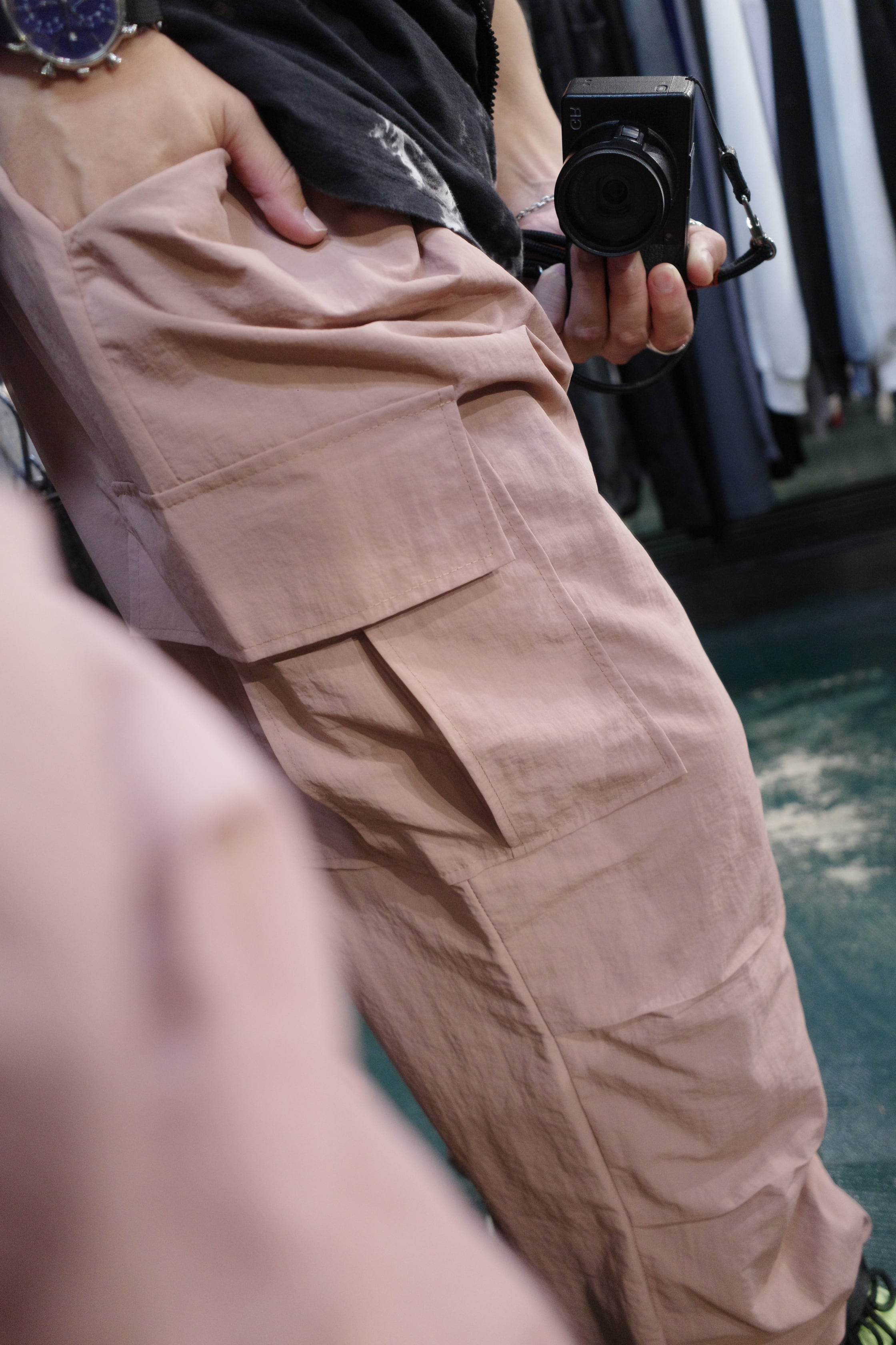 パラシュートパンツをベースにカーゴポケットをプラスしたデザイン性