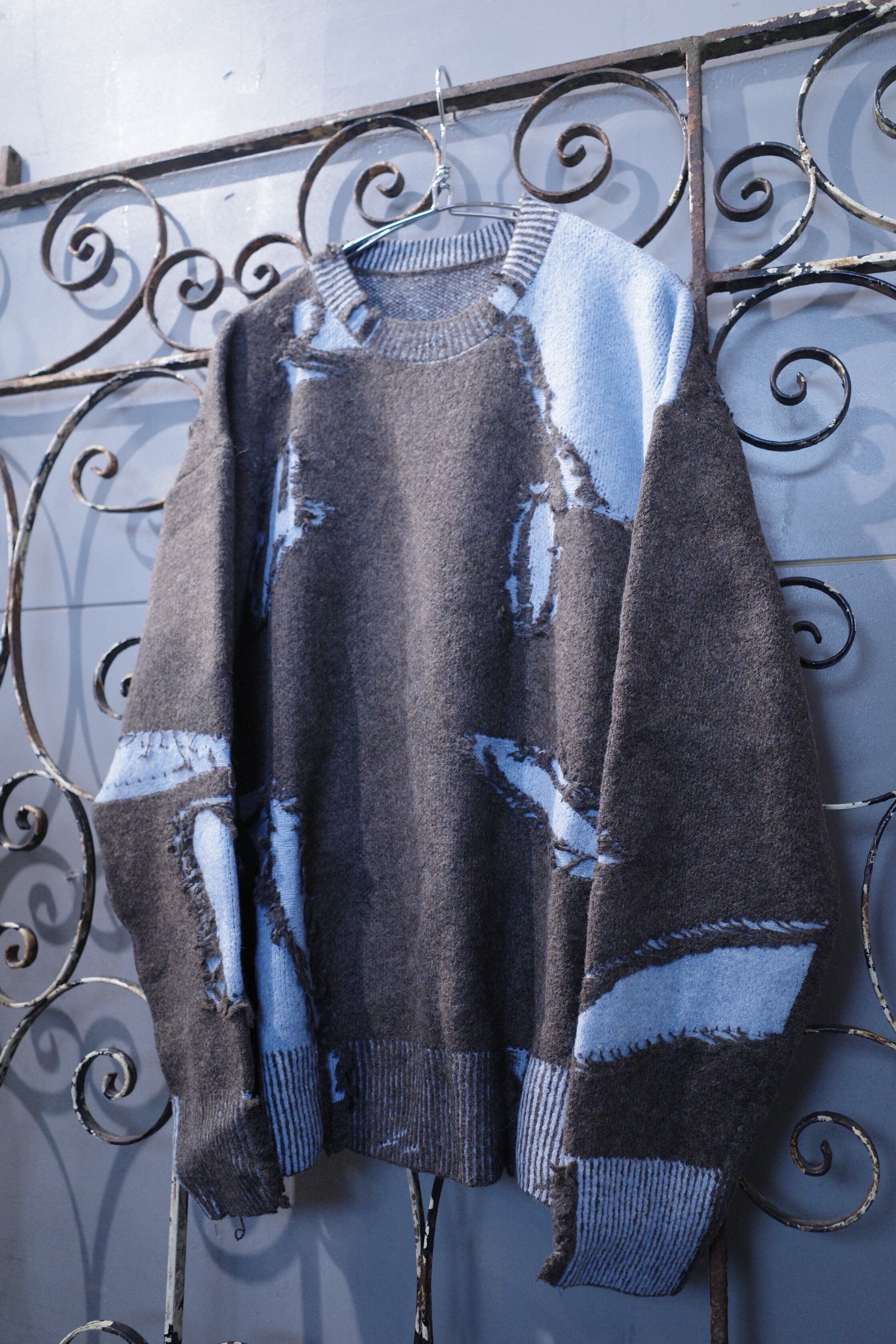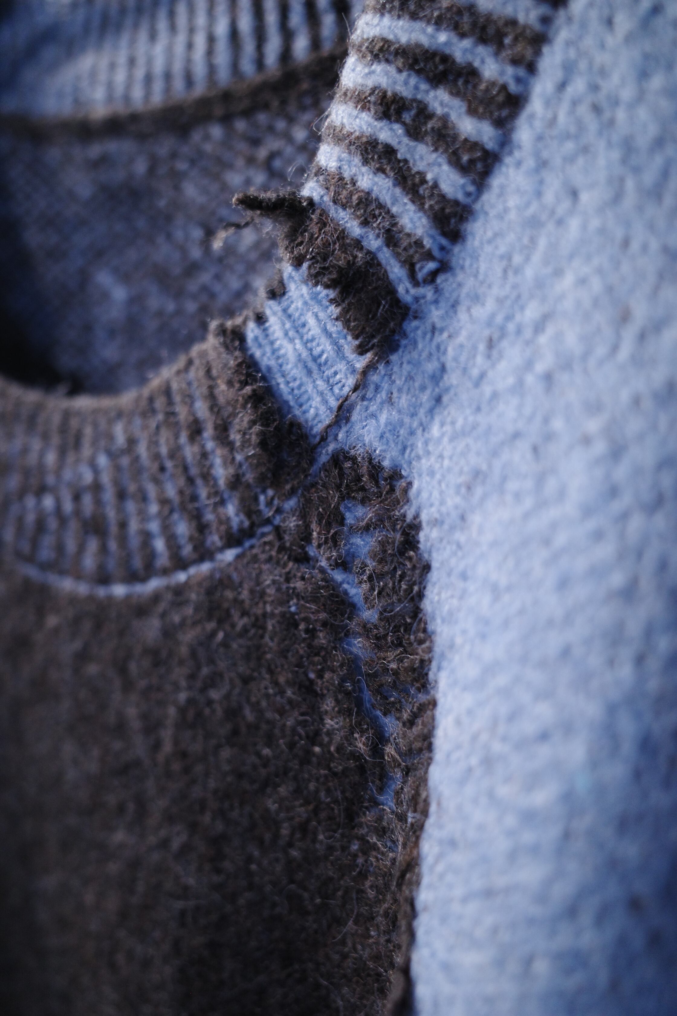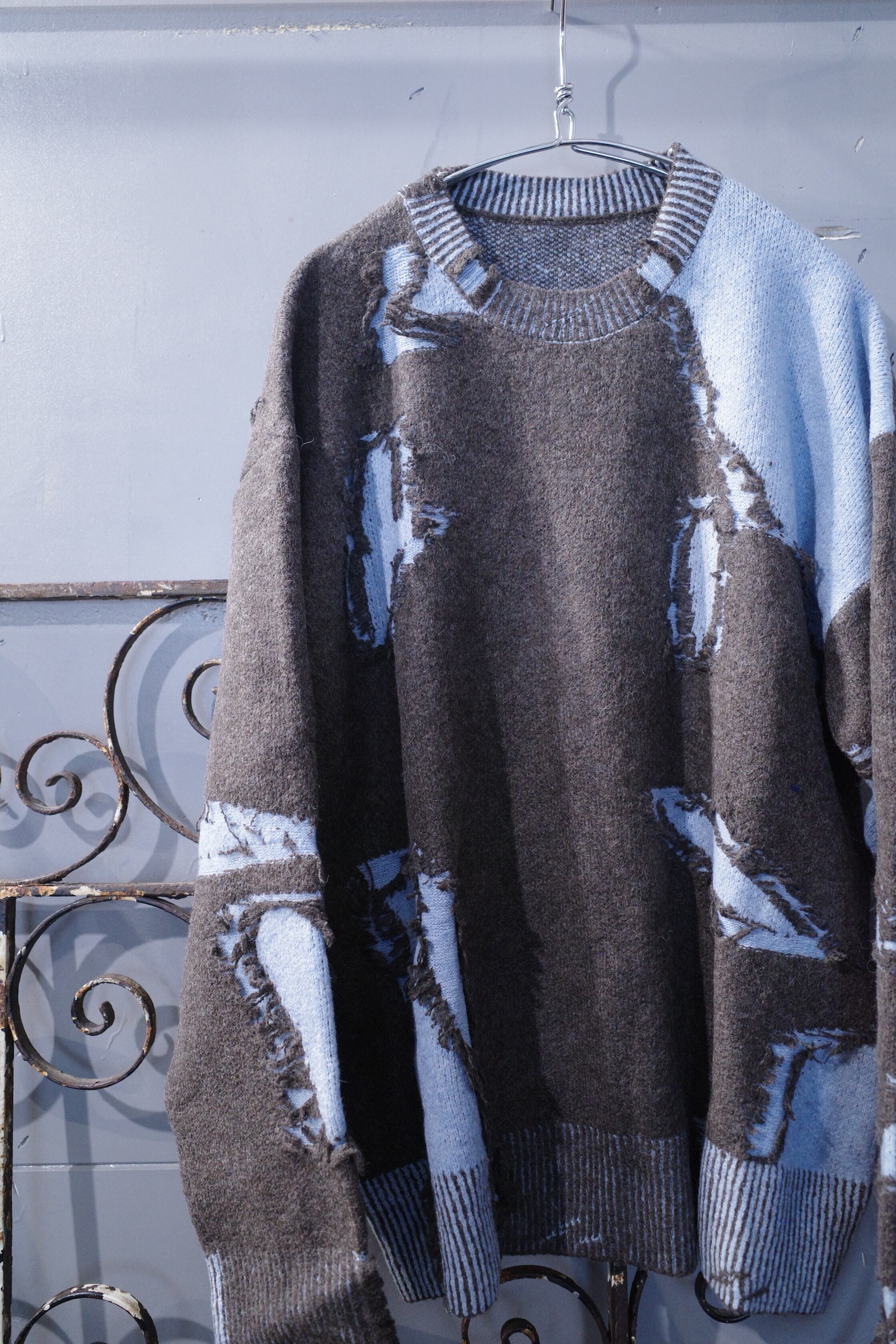 チョコミント(茶色×ブルー)カラーが主役のプルオーバーニット
