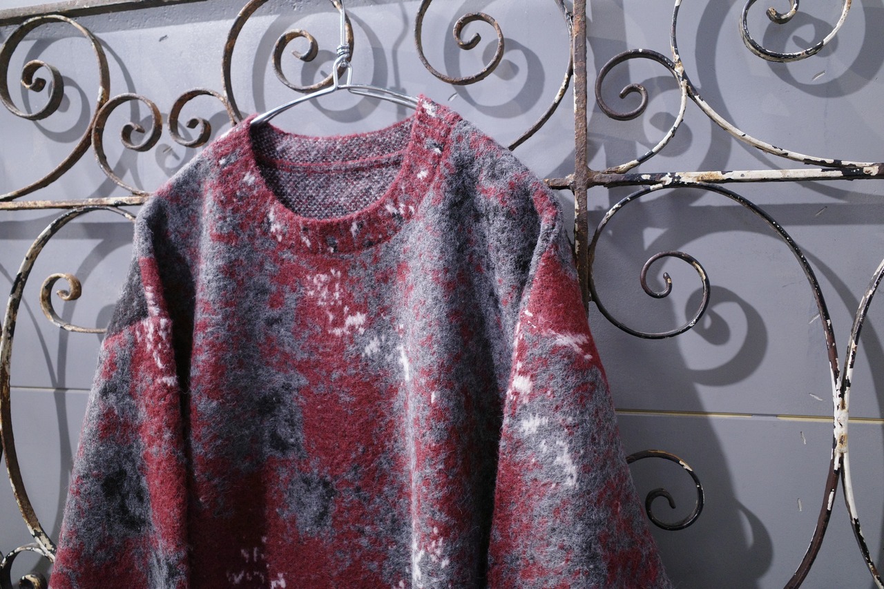 スプラッシュ柄ニットプルオーバー (ワイン)