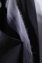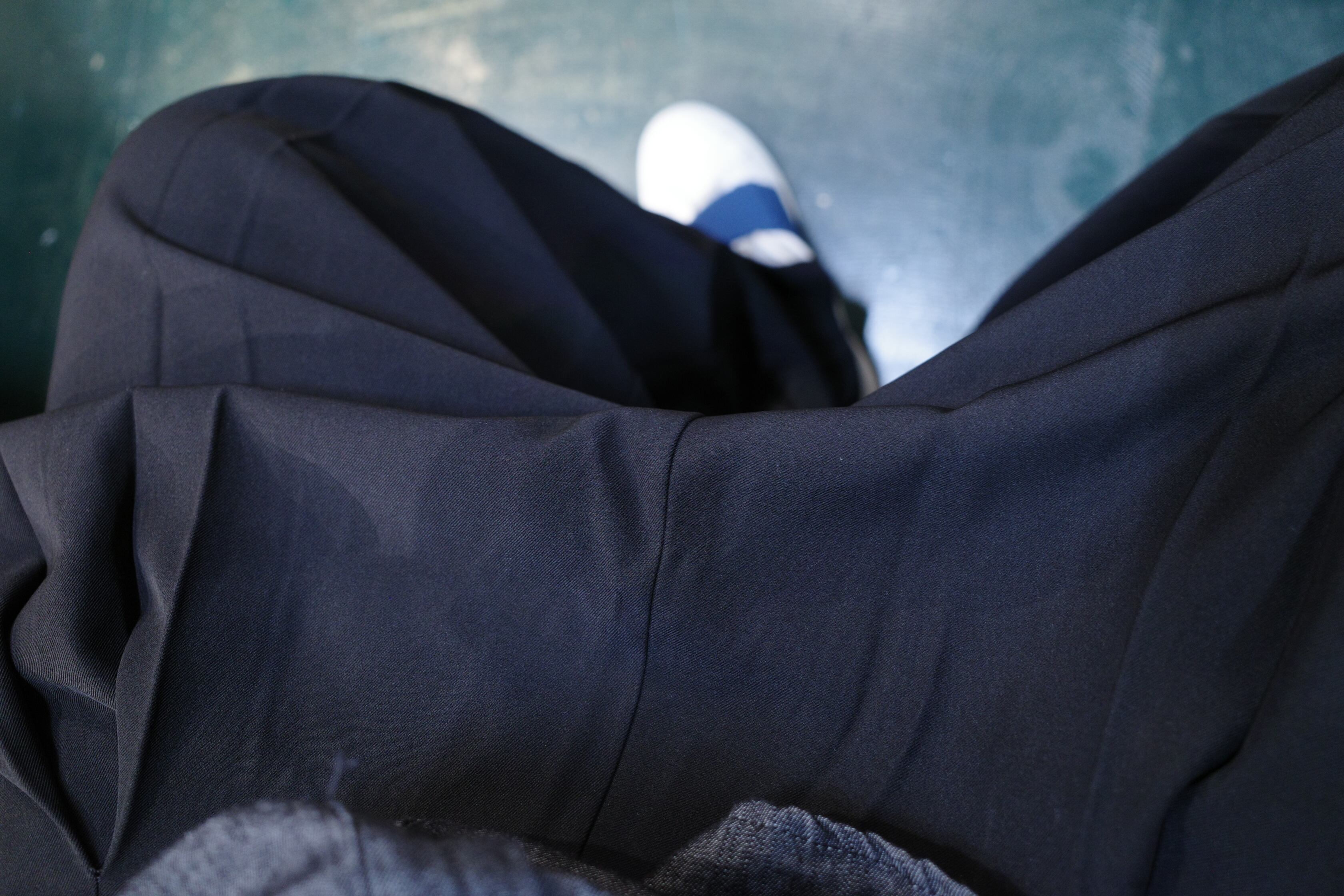 切りっぱなしで外向きのサイドラインの縫い目がアクセントとなり
