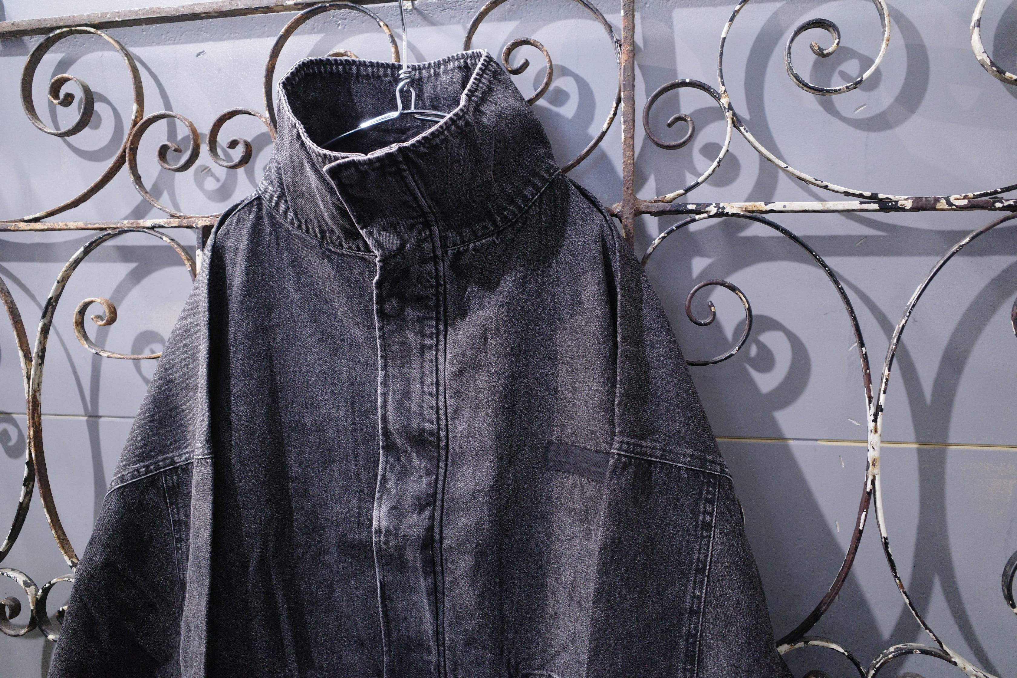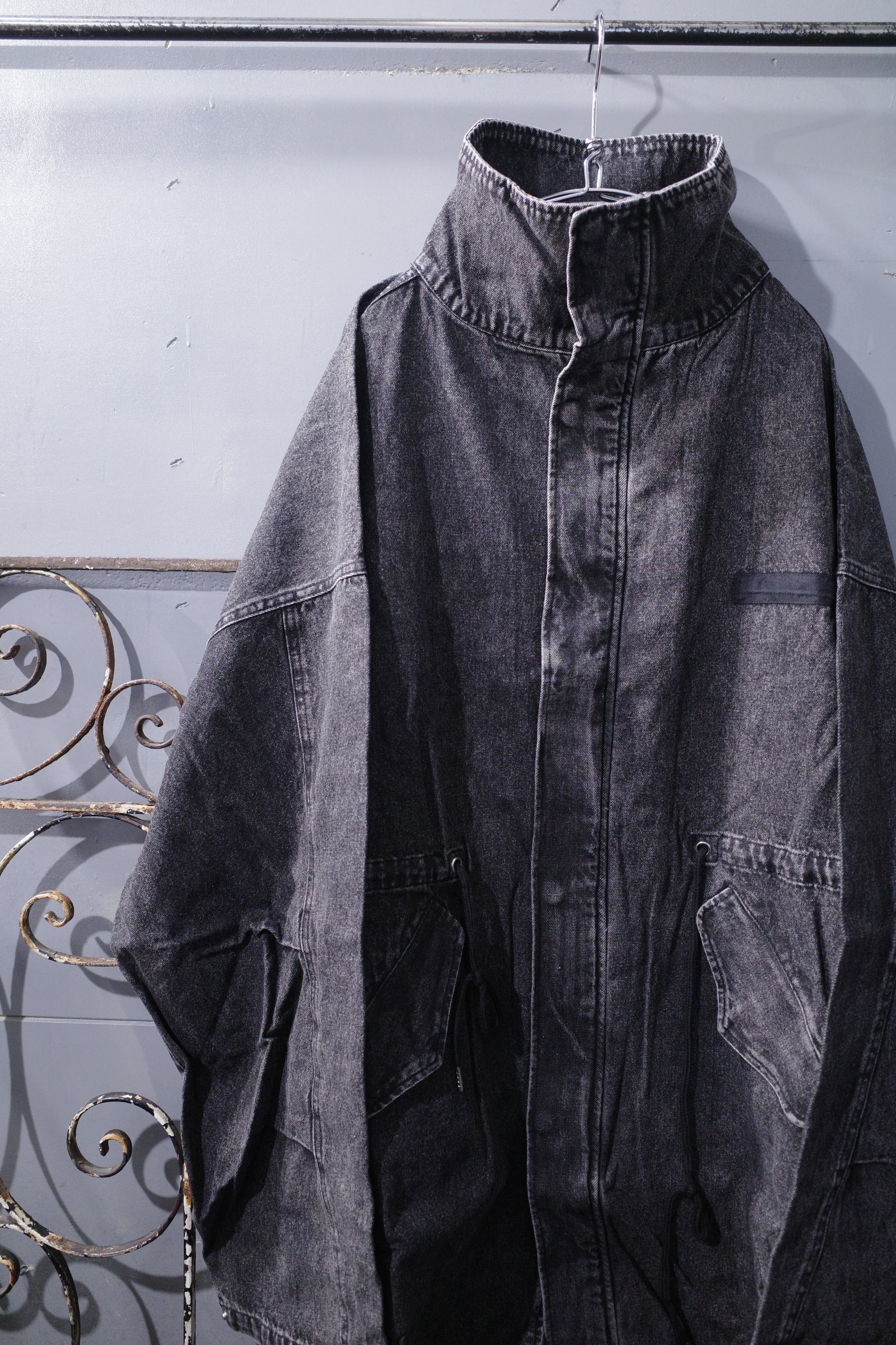 ビッグシルエットデニムモッズコート (ケミカルブラック)