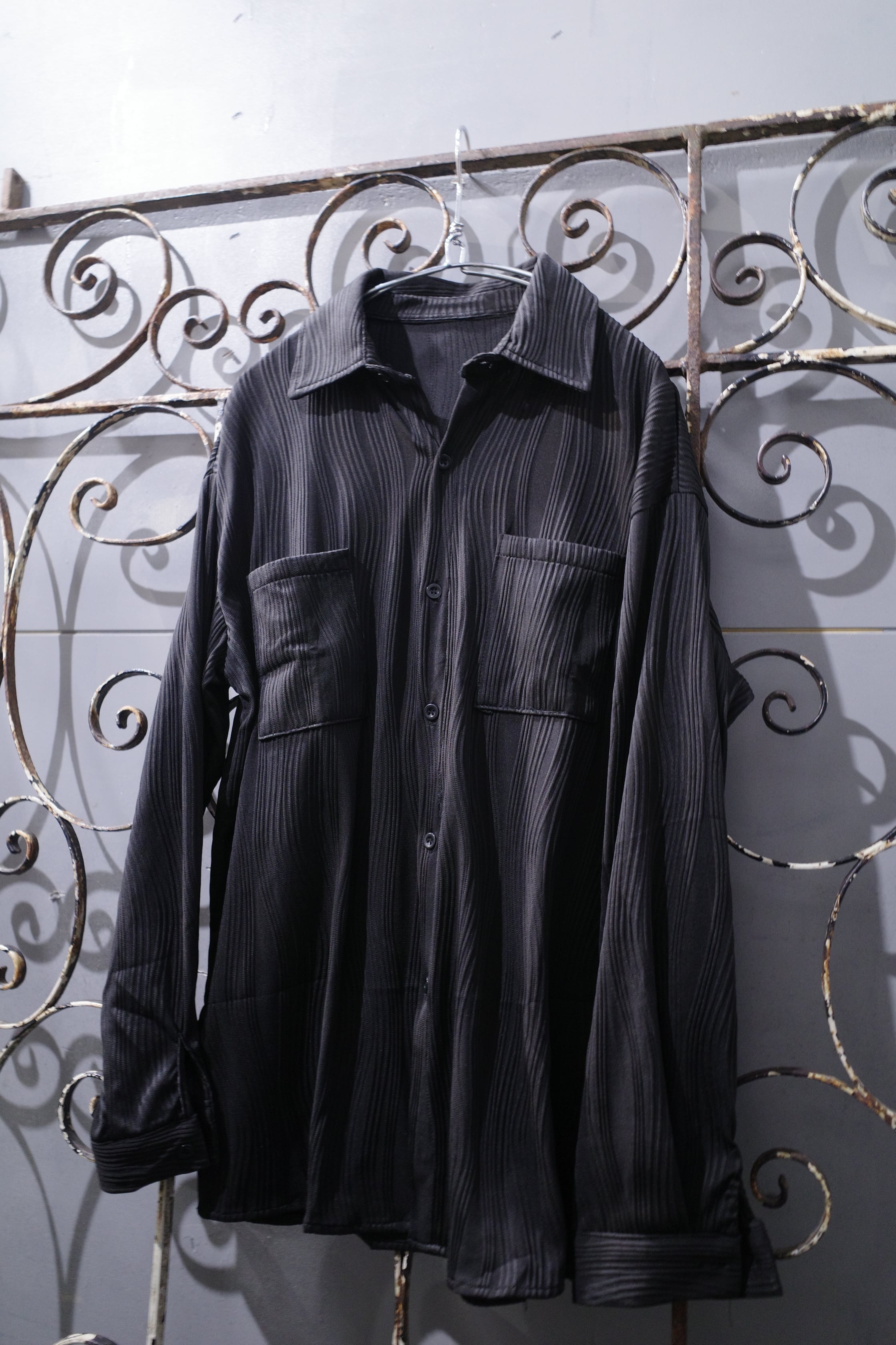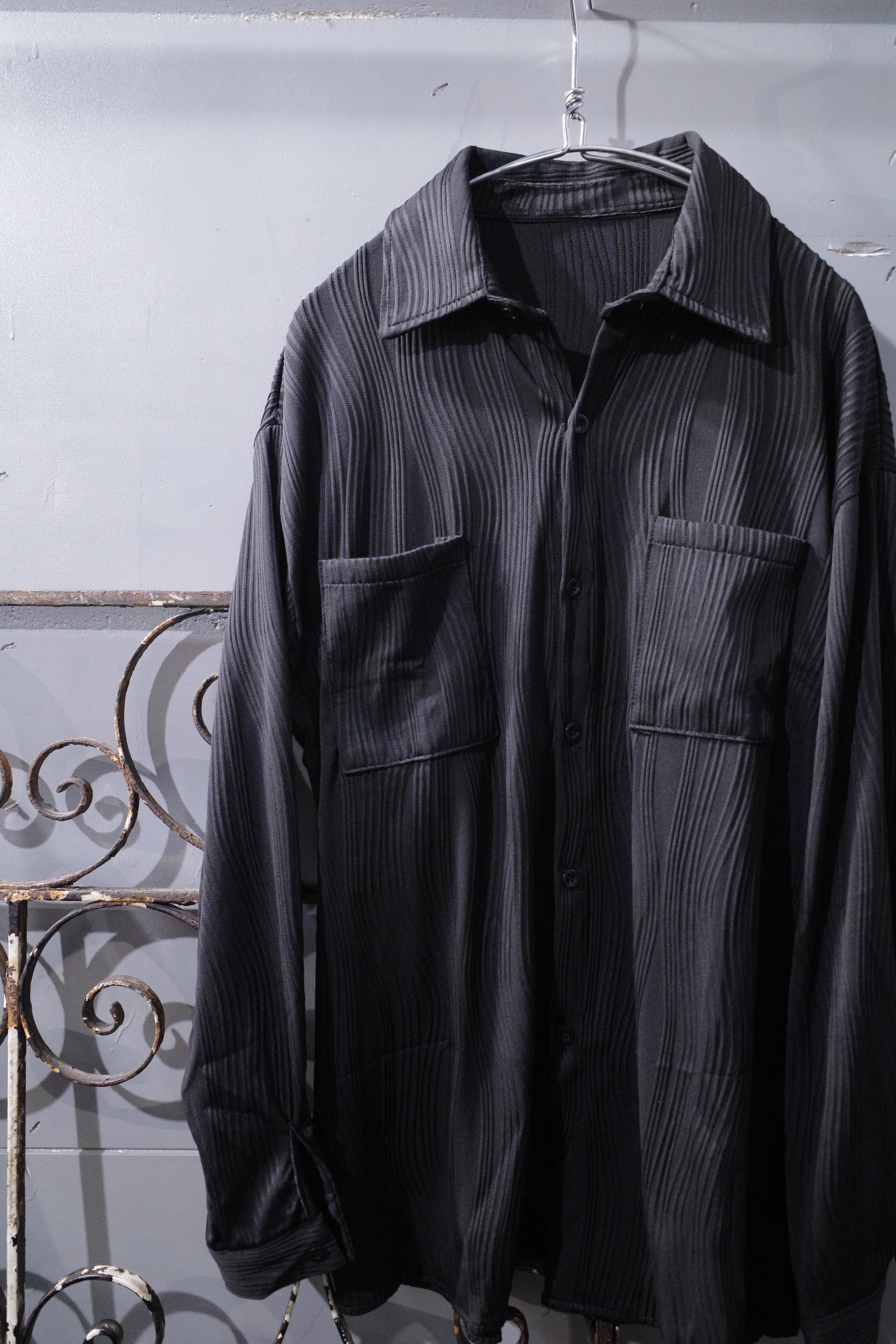 ウェーブプリーツシャツ (ブラック)