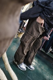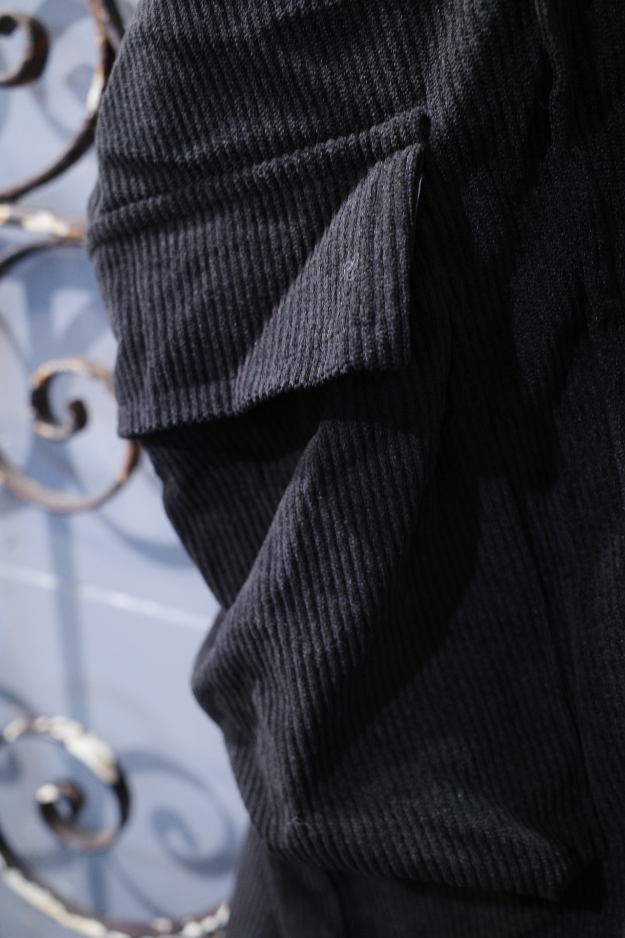 両サイドにはフォルムの異なるカーゴポケットをレイアウトしたアシンメトリーデザイン