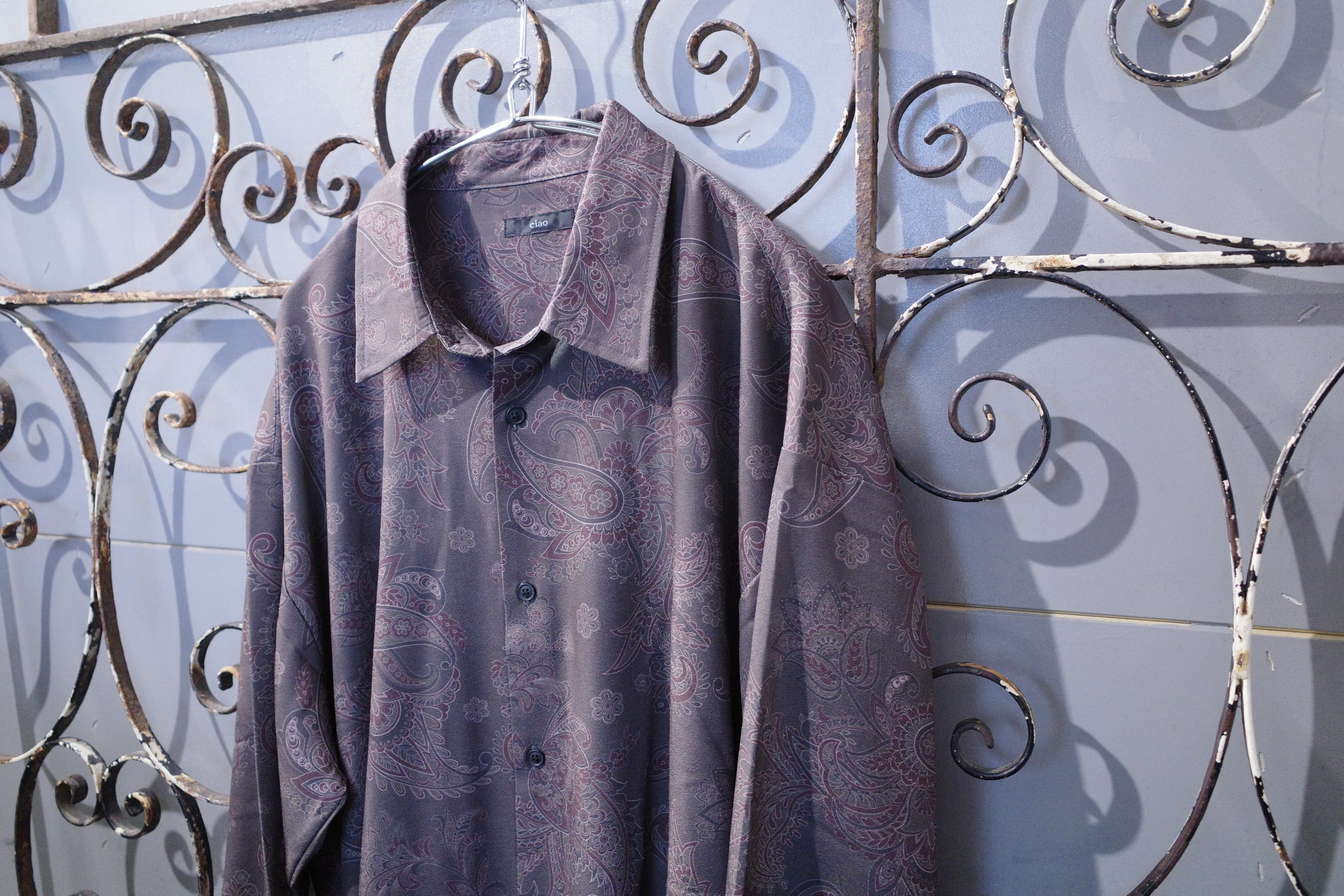 ペイズリー柄ルーズシルエットシャツ (ブラウン)