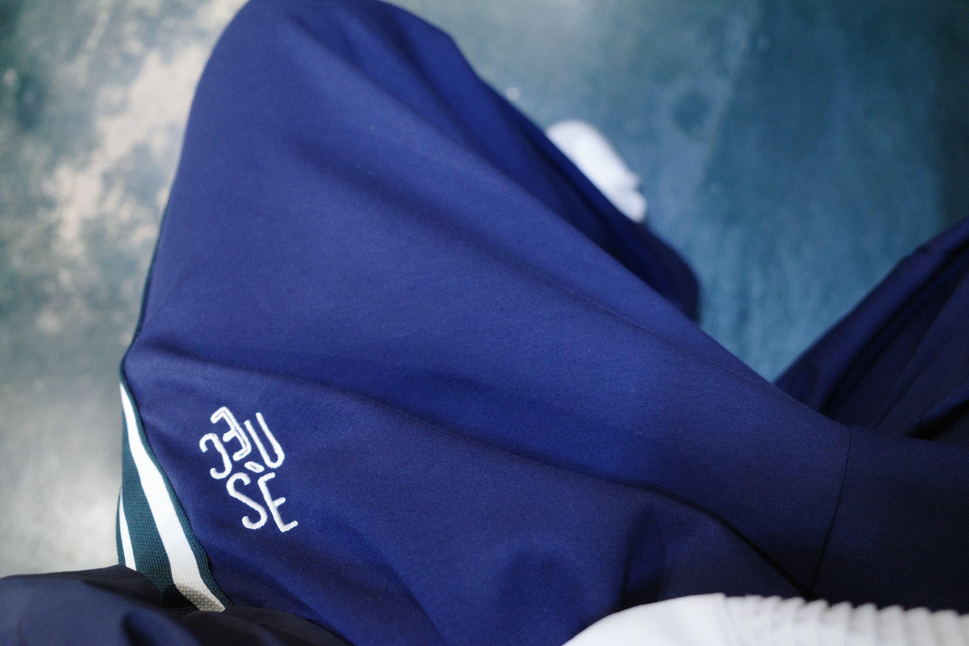 【scène】ロゴ刺繍カラーラインパンツ (ネイビー)