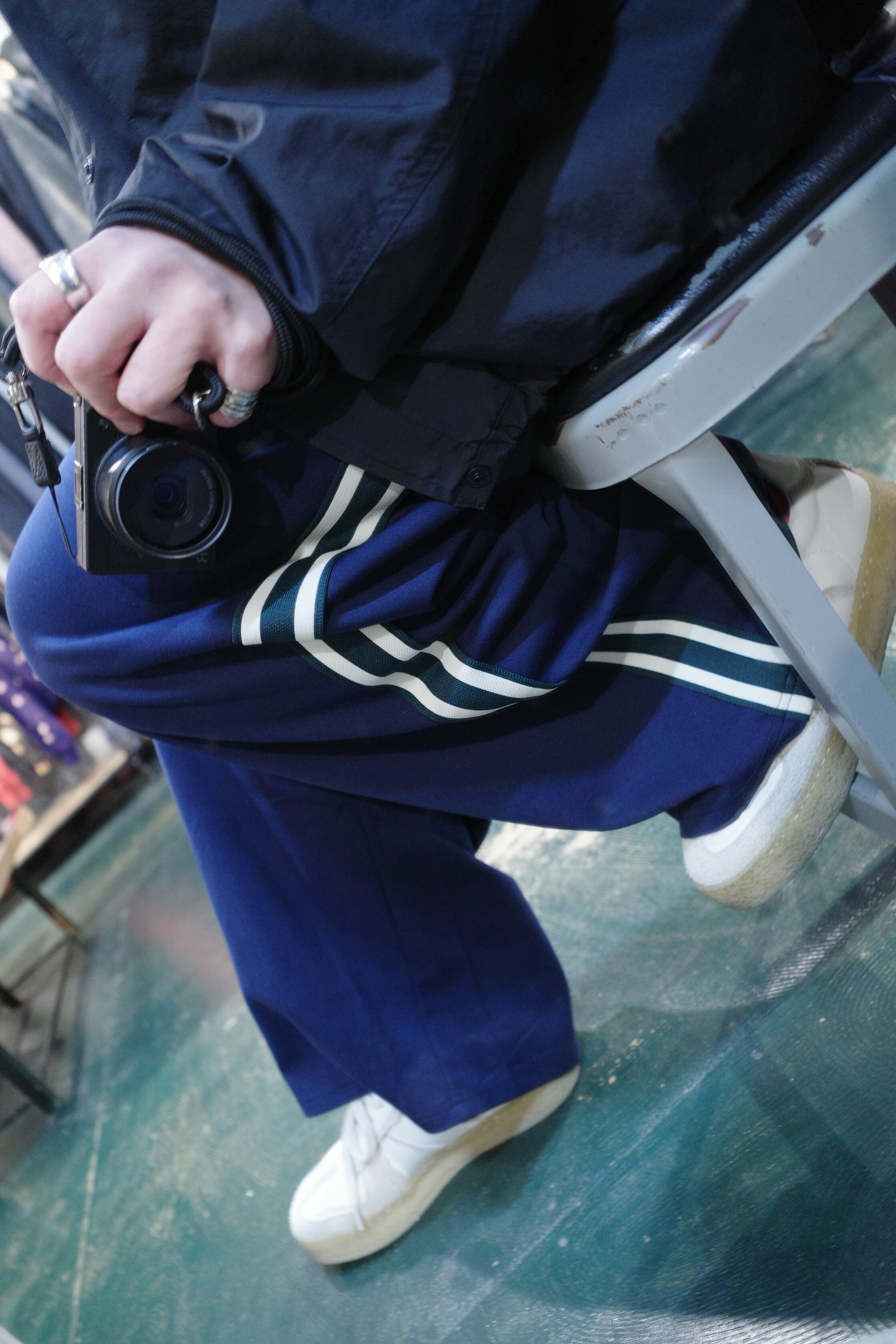 ロング丈アウター×トラックパンツ