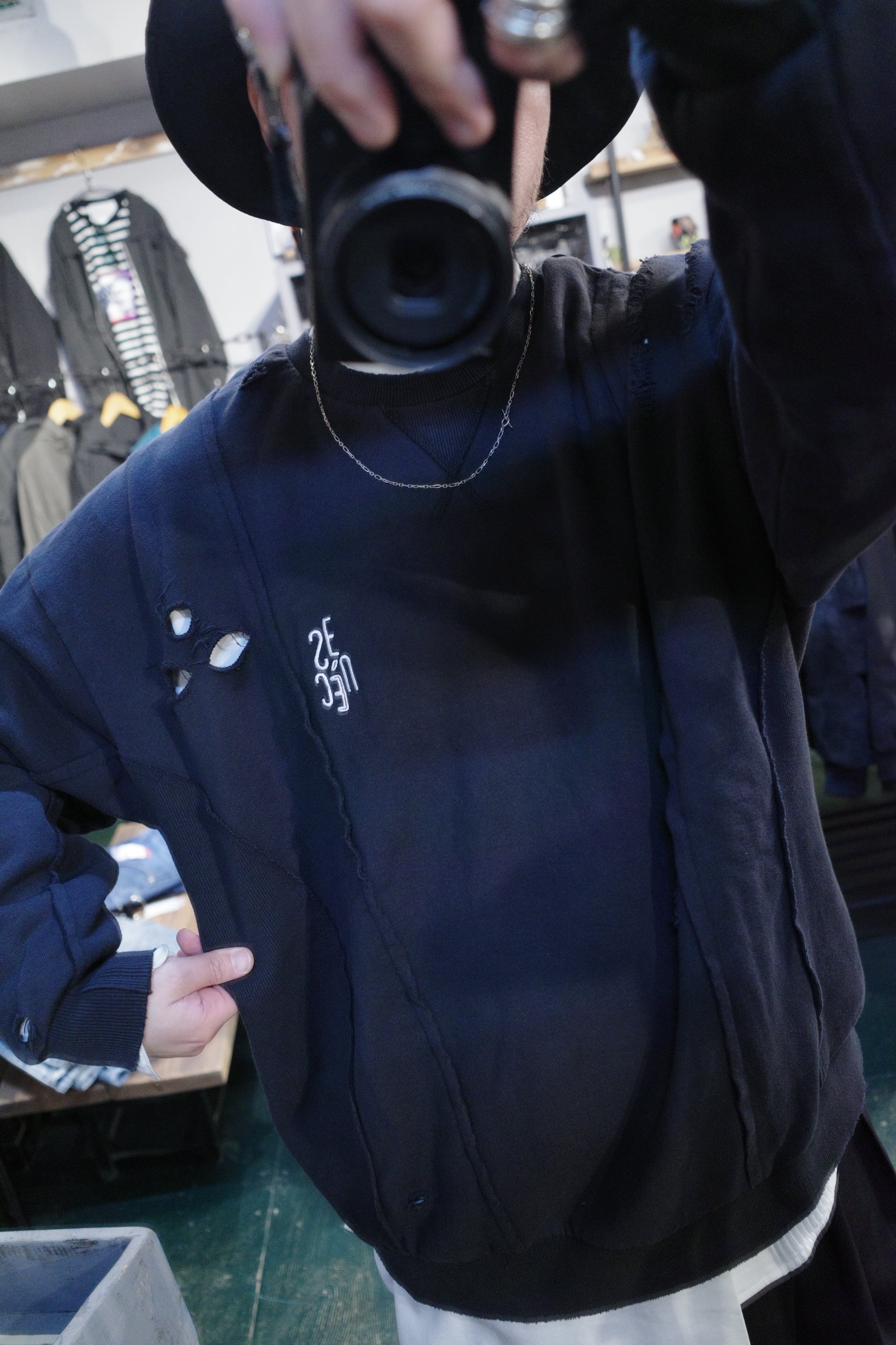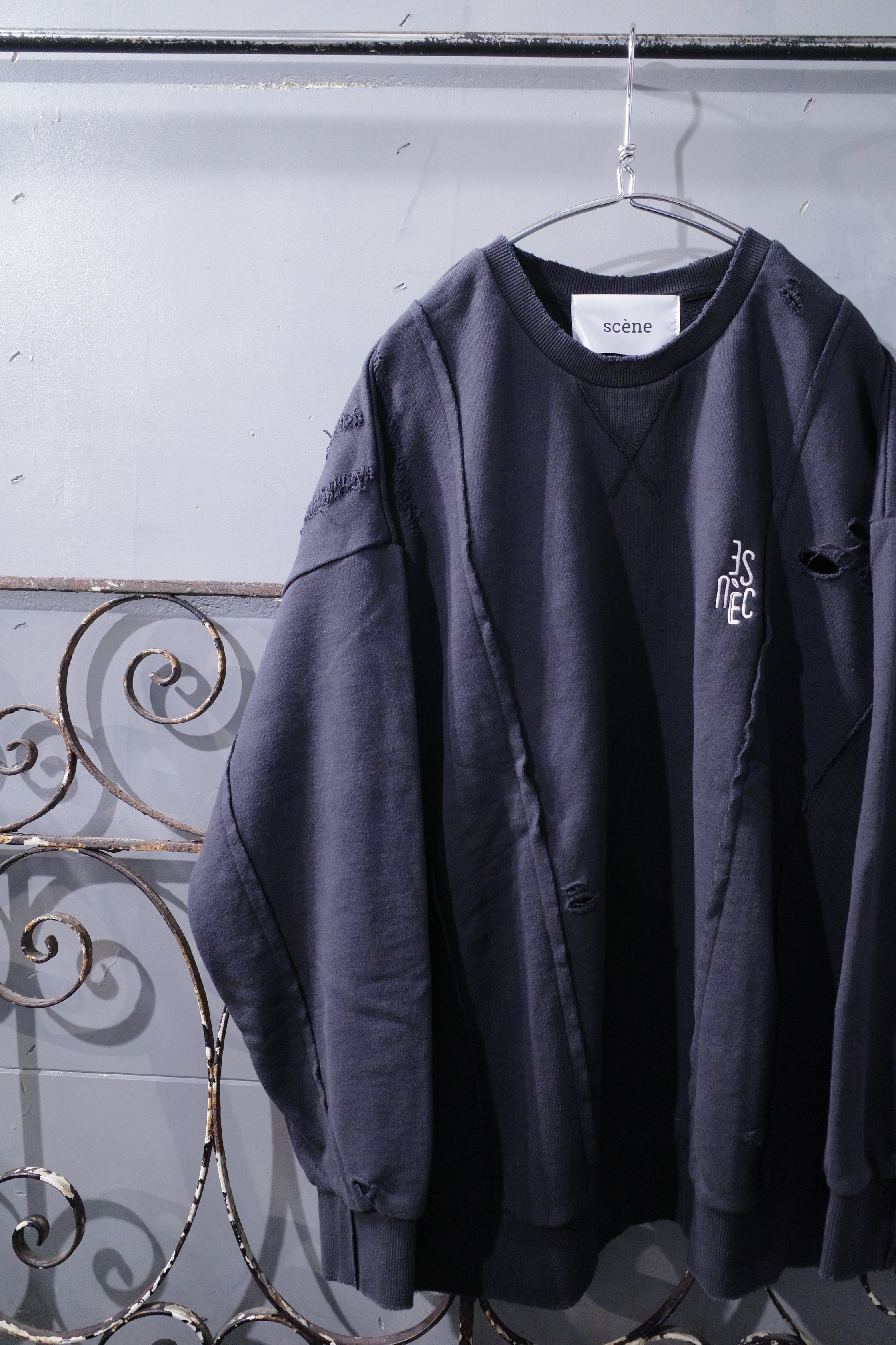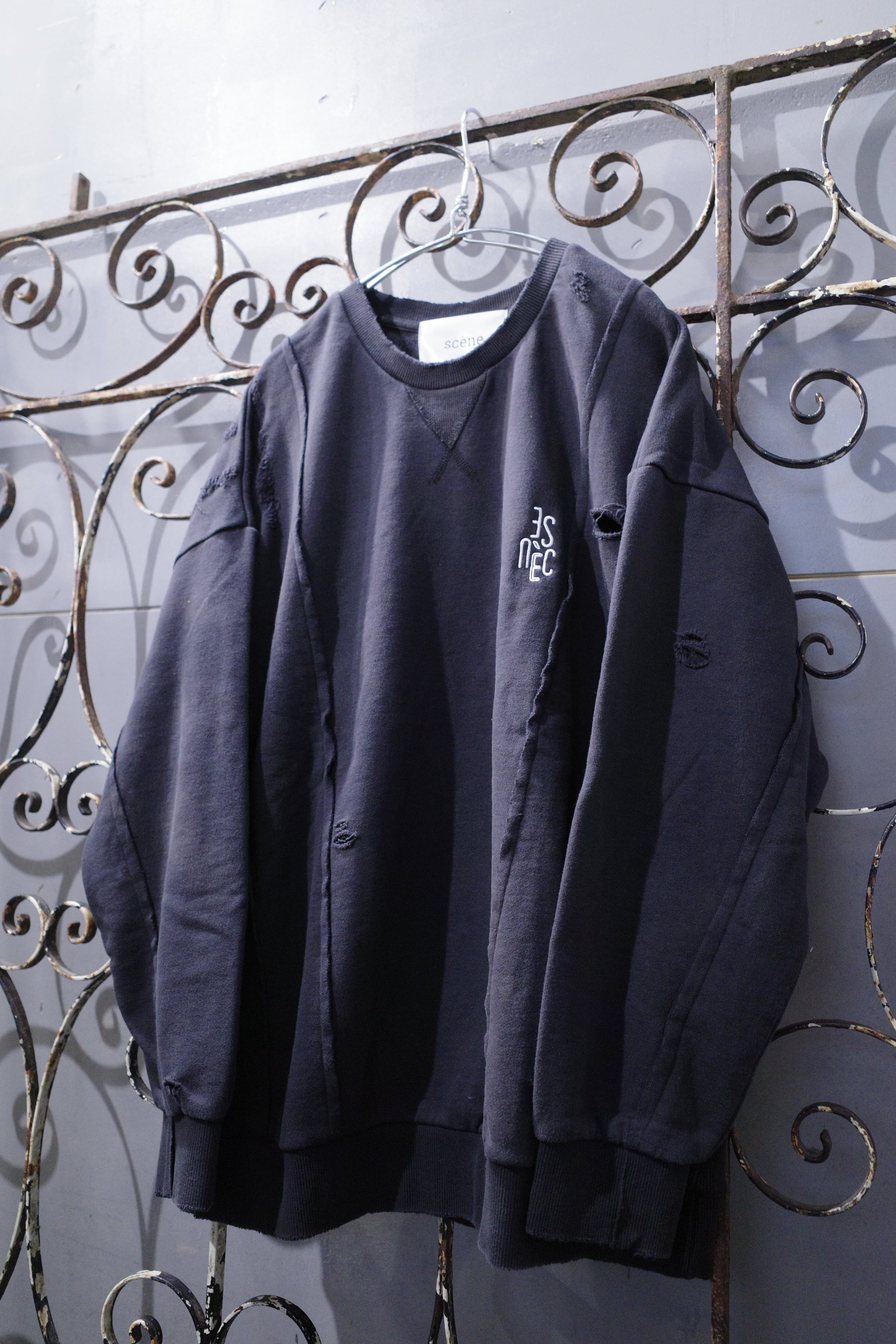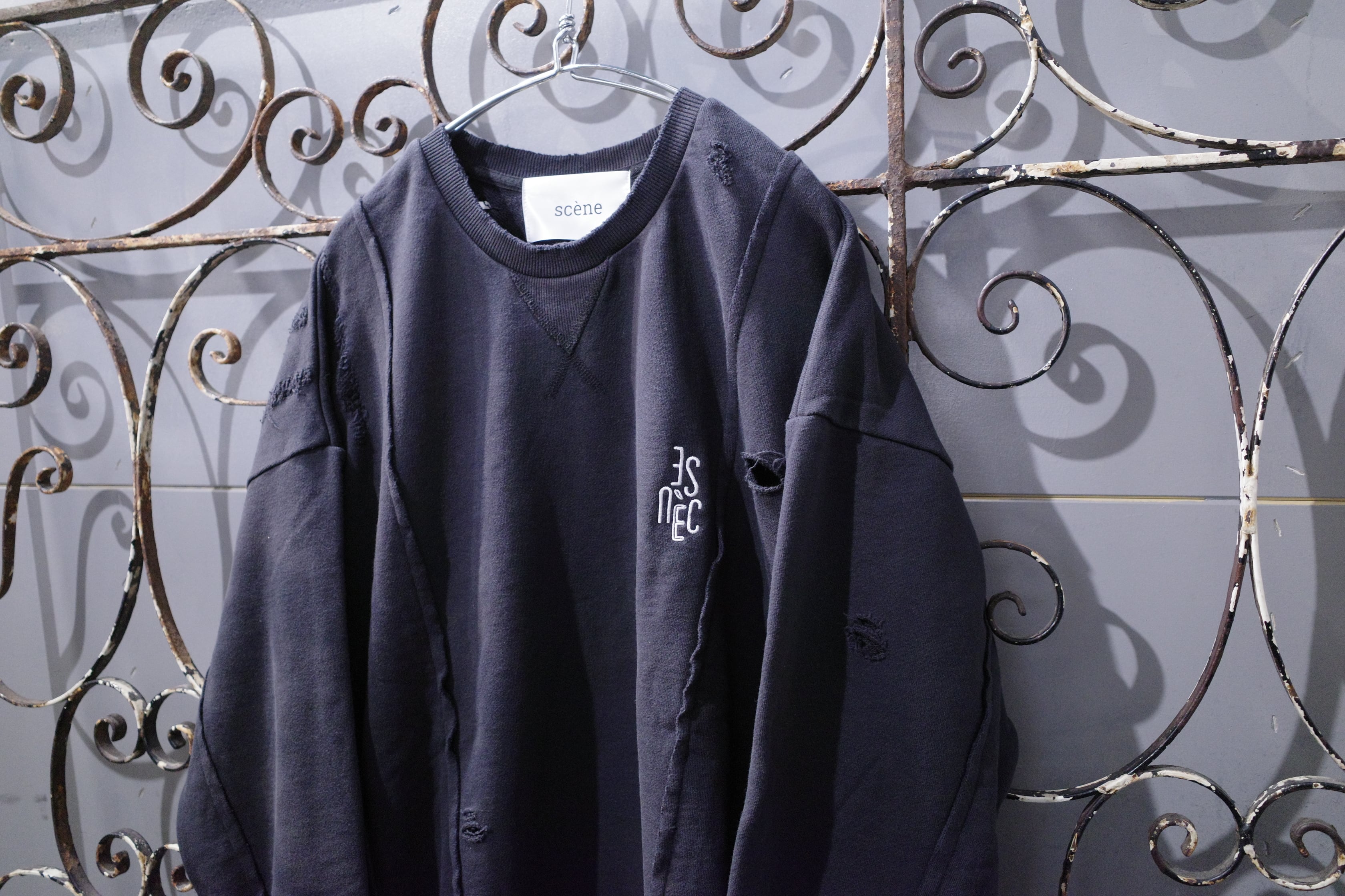 【scène】ロゴ刺繍ダメージスウェット