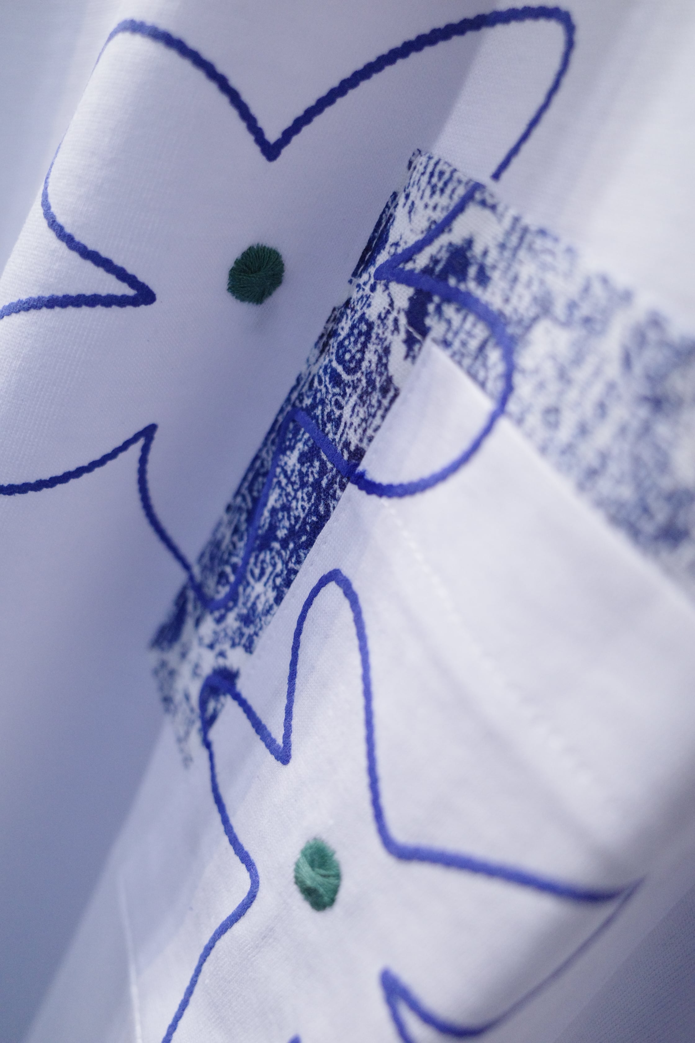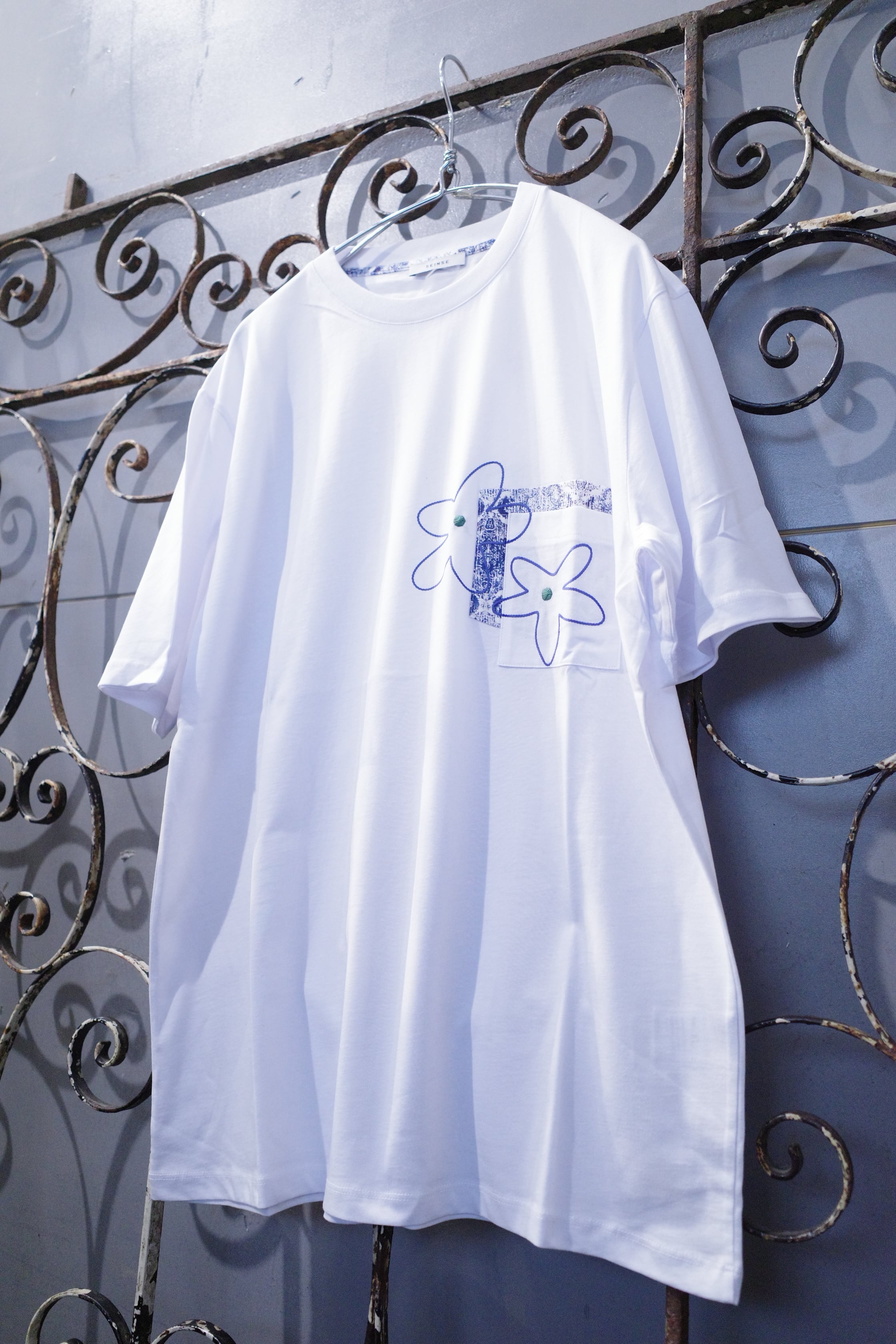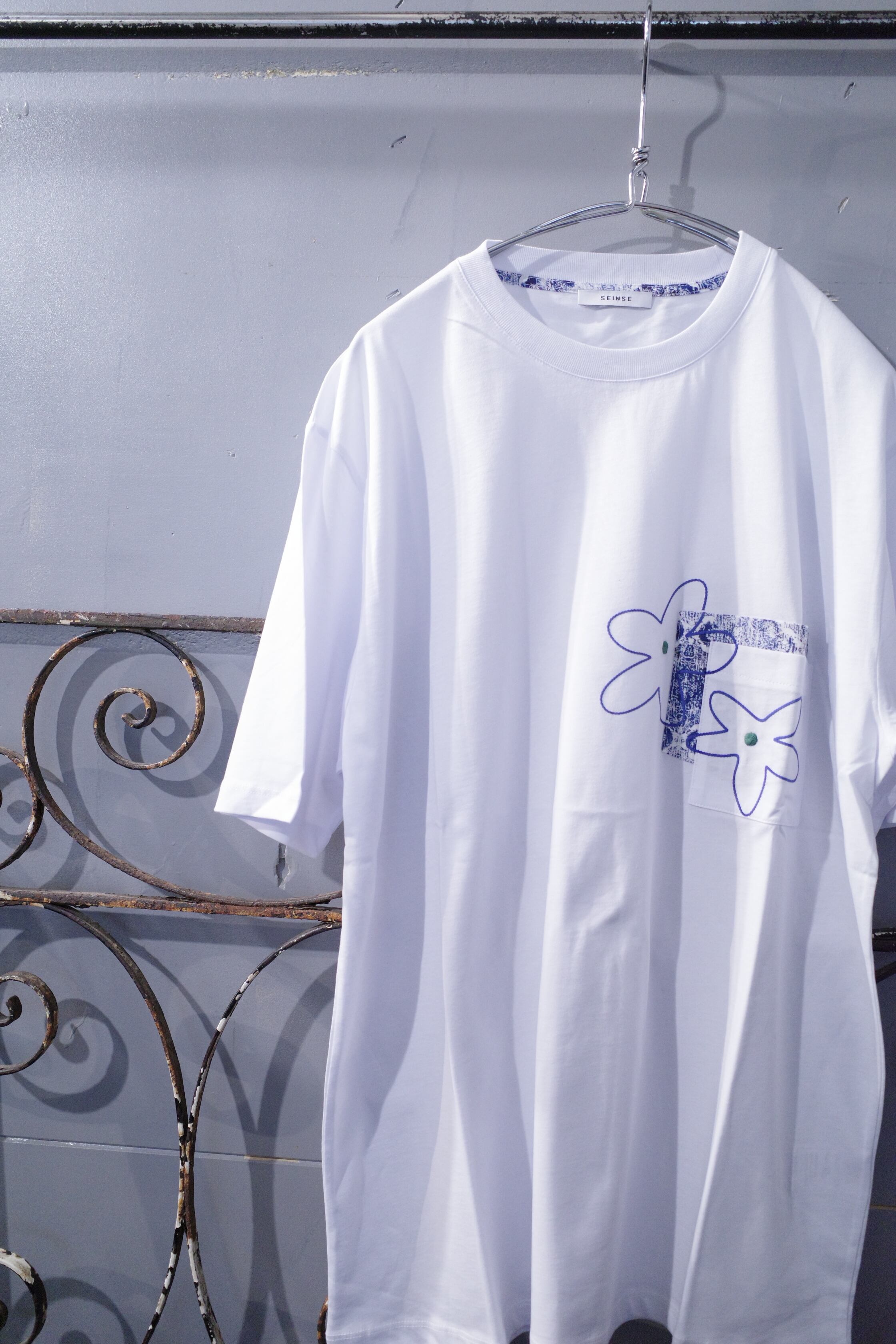 【SEINSE】チェーンステッチフラワーWポケットT (ホワイト)