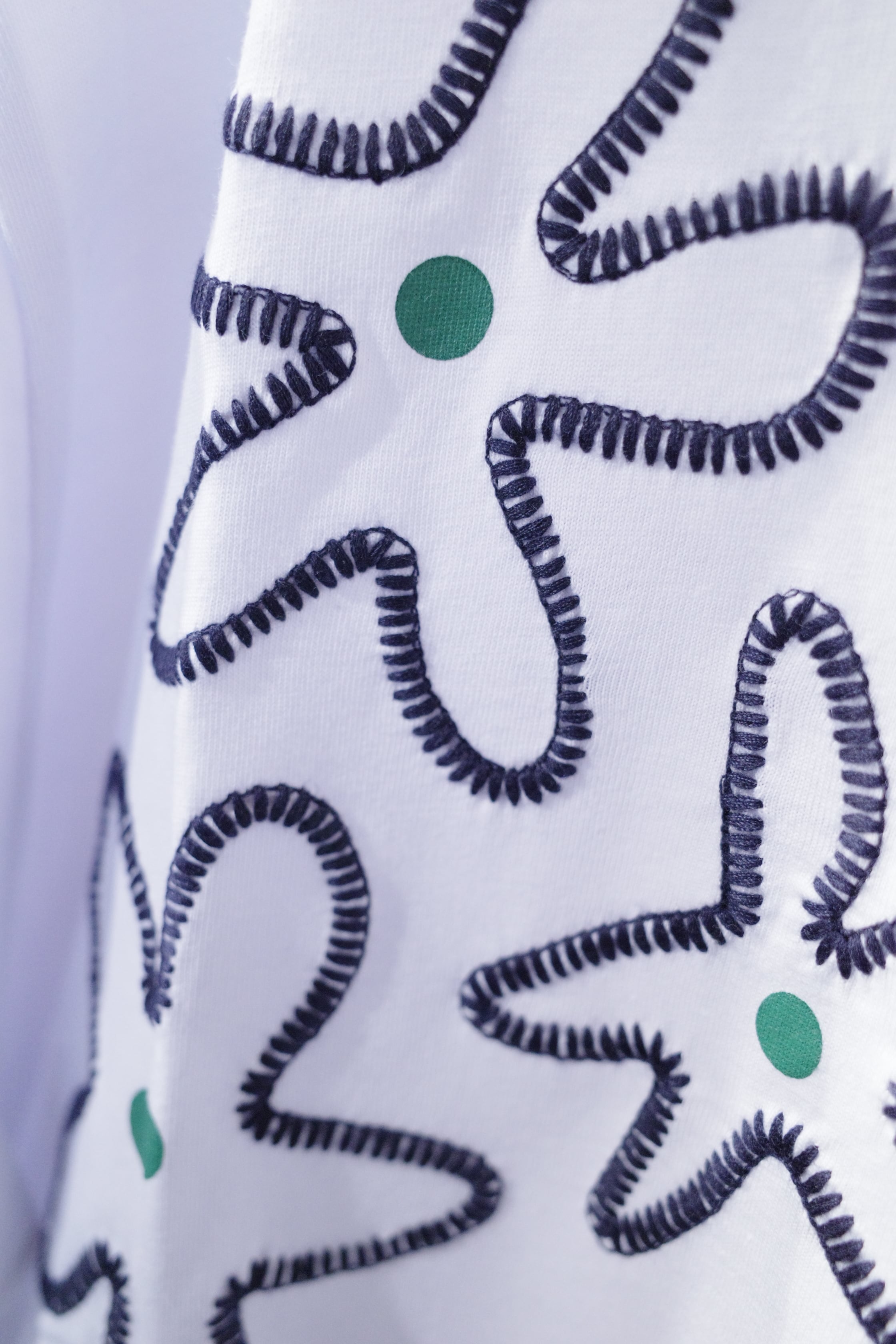 イタリアらしい愛嬌たっぷりな花柄ステッチ