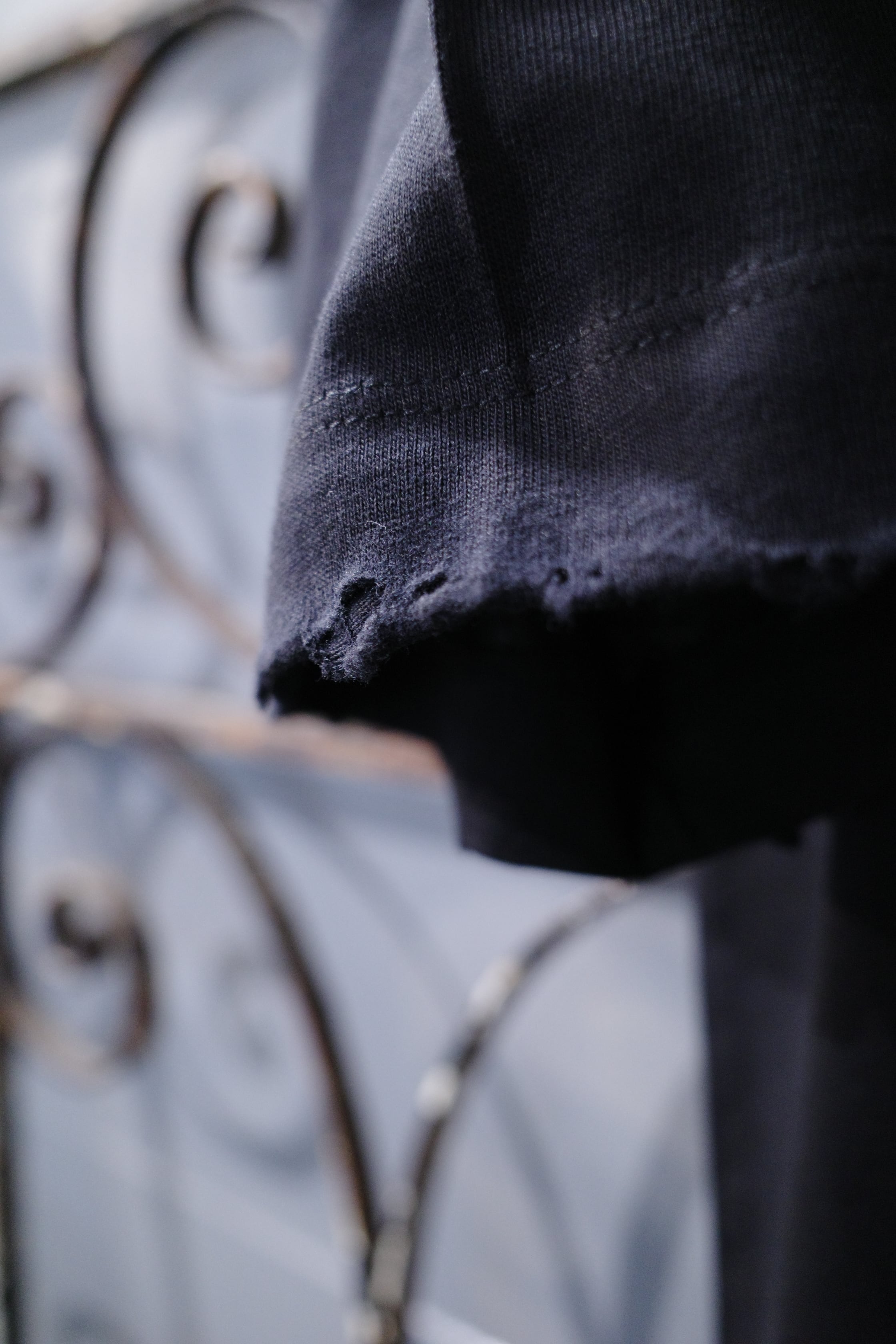 袖・襟元・裾は大胆なダメージ加工でエイジングされ