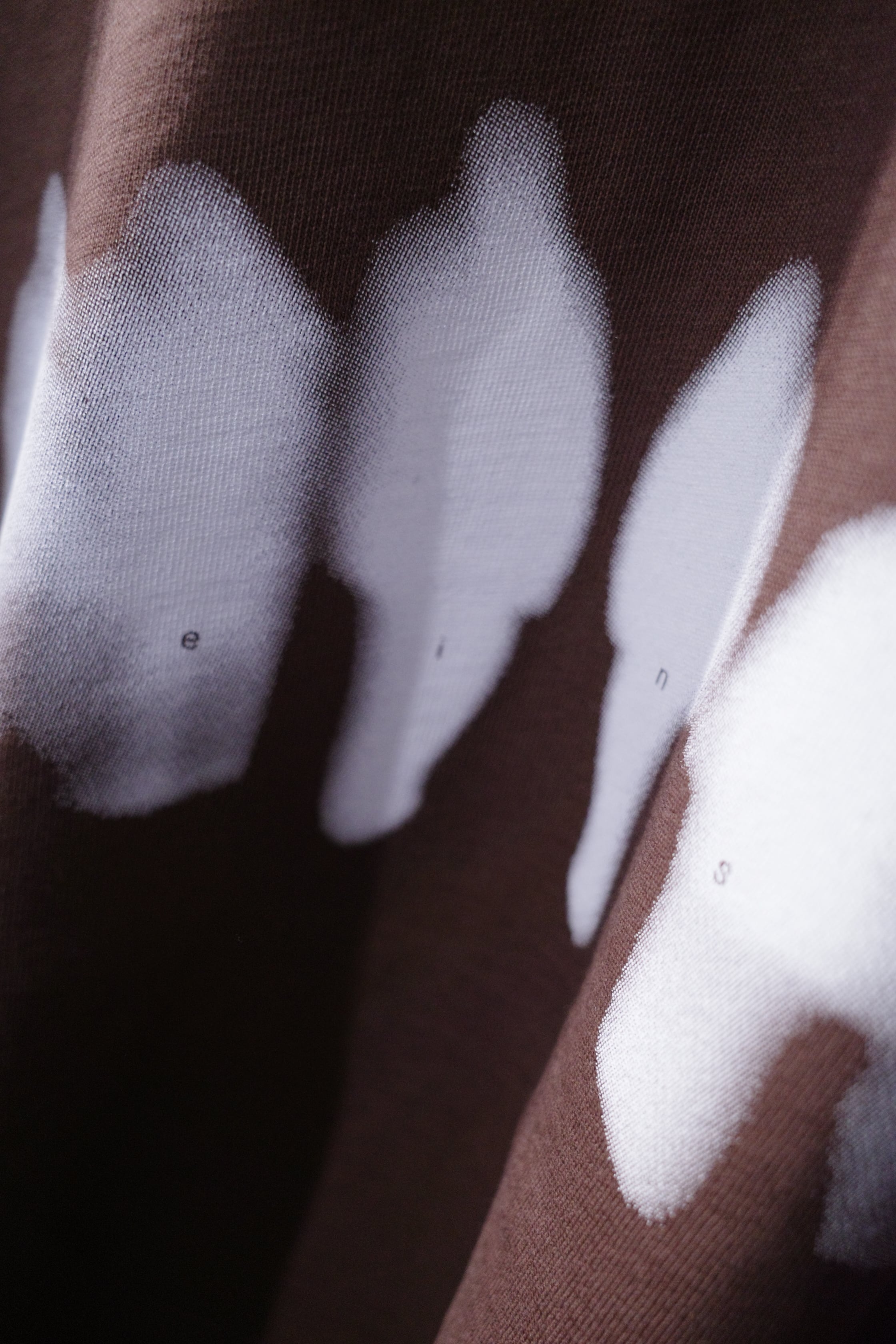 抽象的な表現のグラフィックにはさりげなくブランドロゴが浮かぶ