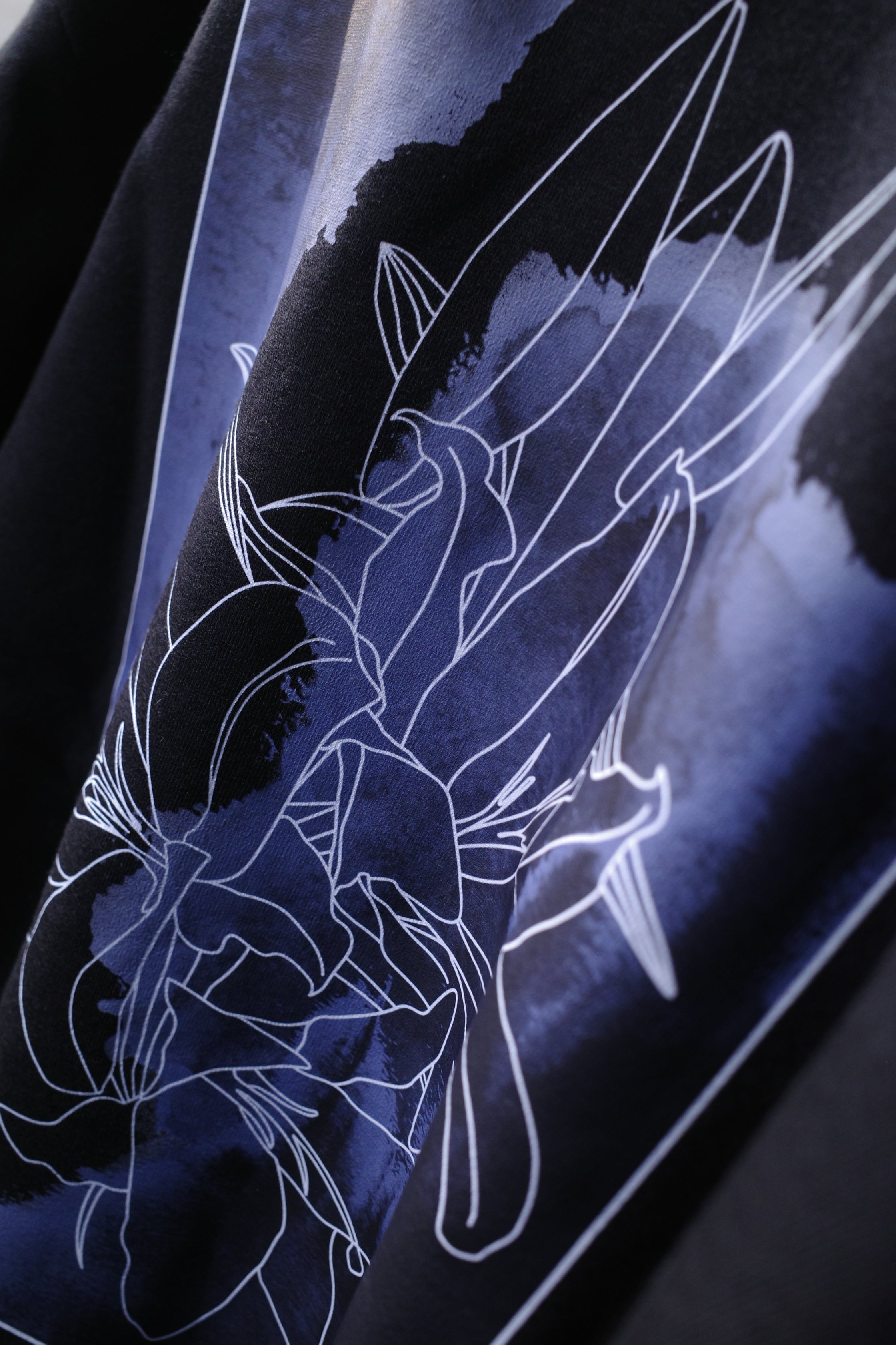 バックプリントには転写とシルクスクリーンの二種類のプリントを重ねた力作
